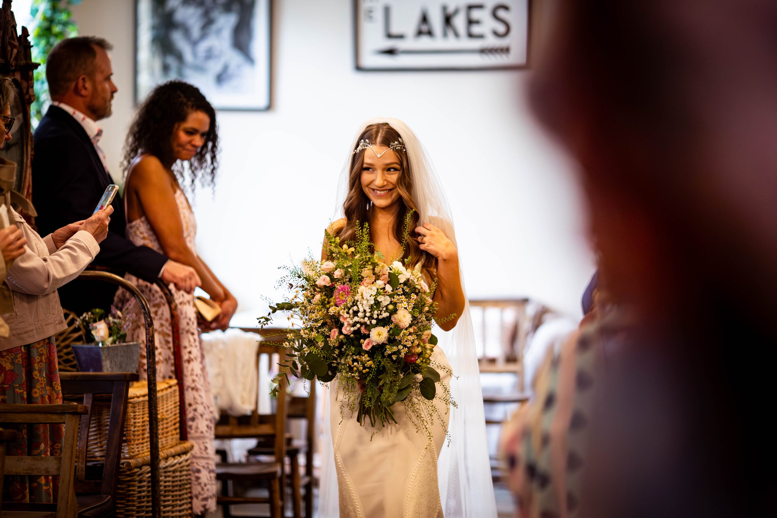 Guests were greeted by Bradley who was nervously waiting at the front of the main room but overall very calm. The space is indeed very light and welcoming and I had a great view of all the guests. Meanwhile Bethany and her bridesmaids were outside, eagerly waiting. Though not traditional, the ring bearer was their pet dog who was extremely excited and made great entertainment for all.