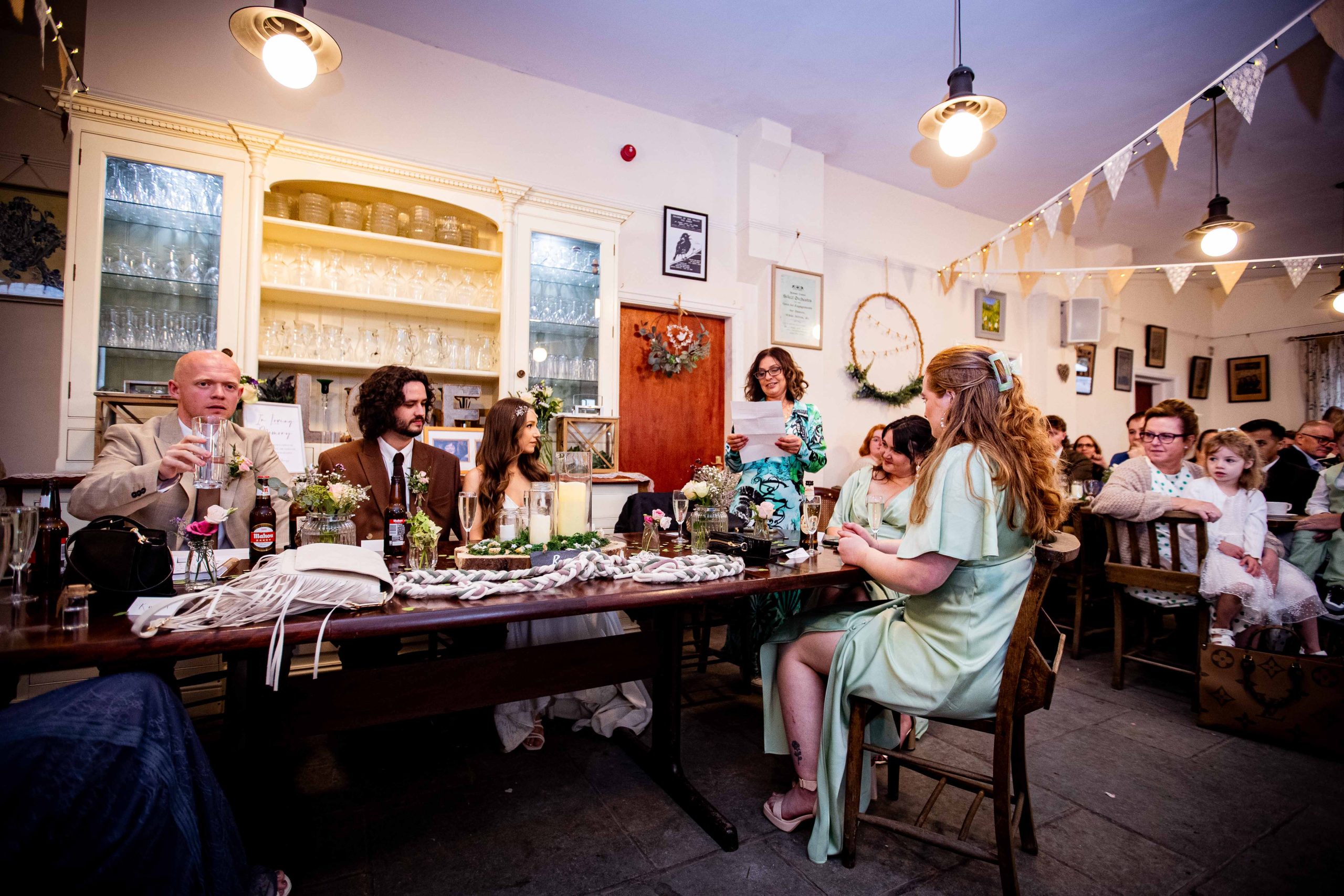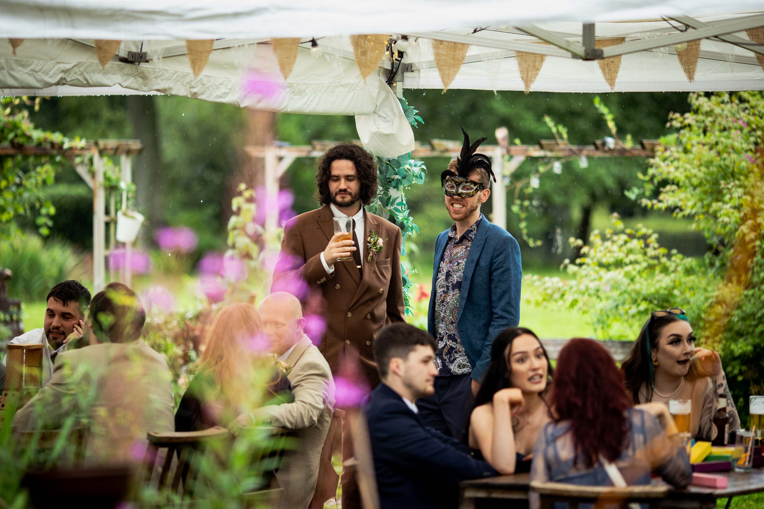 Since the Bradley & Bethany were already legally married, the hand fasting ceremony was conducted by their chosen celebrant. The ceremony was a specifically symbolic ritual where couple’s hands are tied together to represent their commitment to each other. Following 20 minutes or so it was confetti inside then outside for drinks and canapes. The outdoor space was perfect for photography and equally pleasant.
