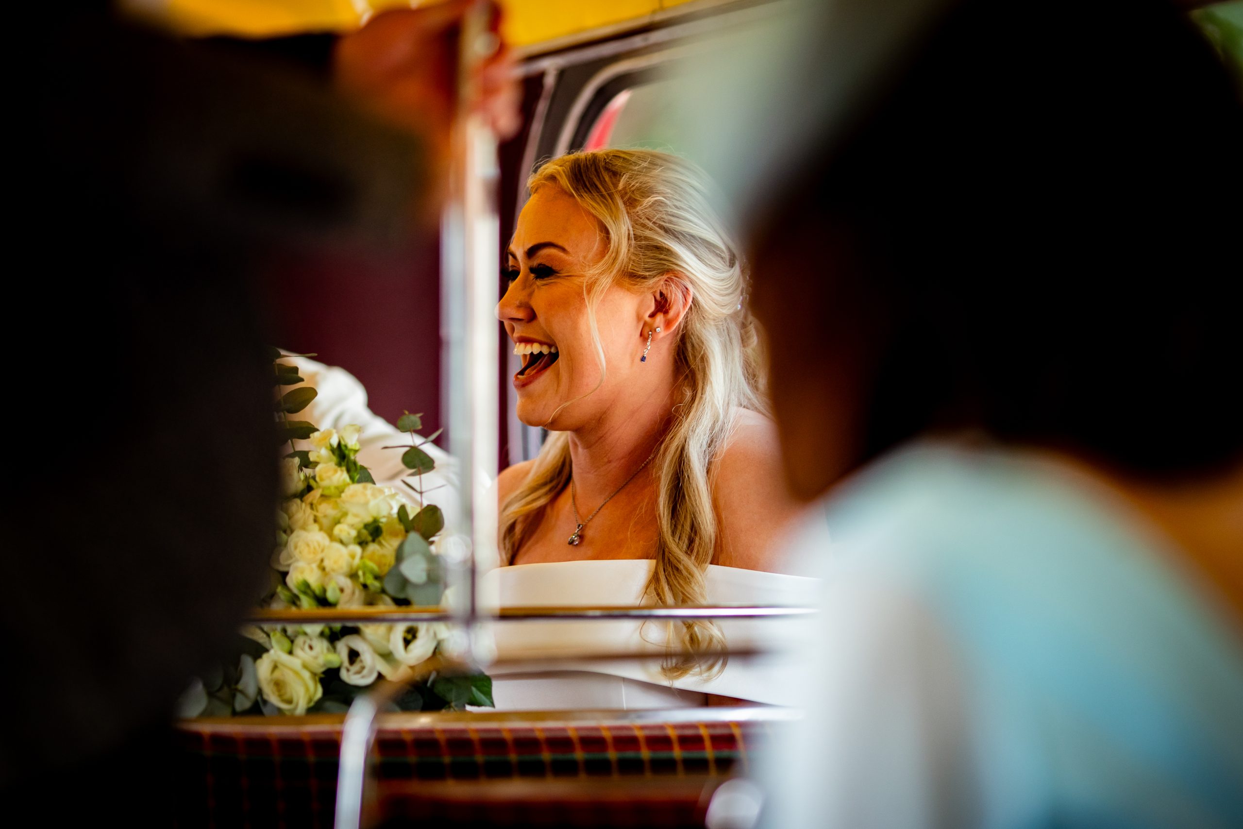 Getting on an old red bus is always great entertainment for all the guests and it keeps all the guests together of course.
