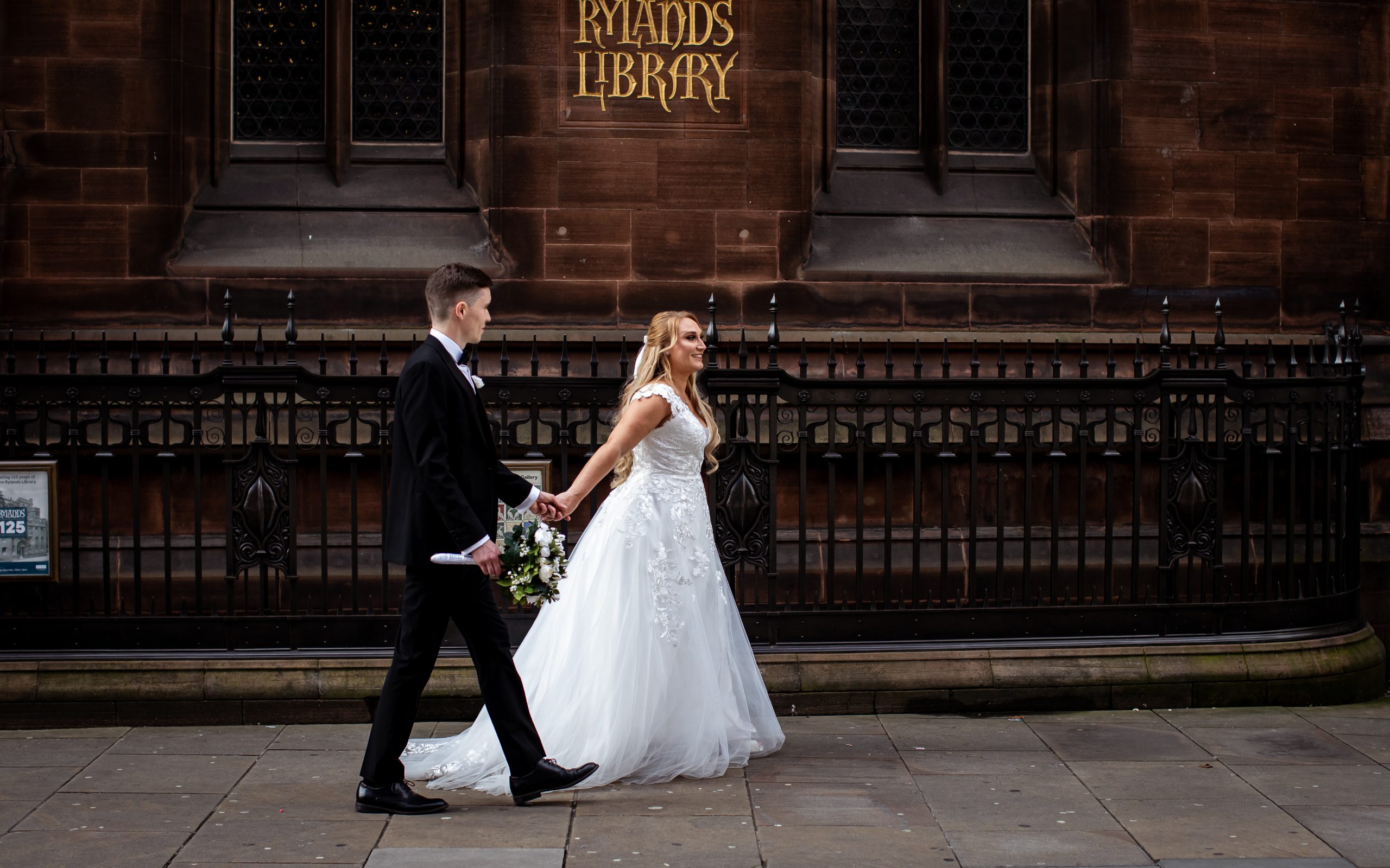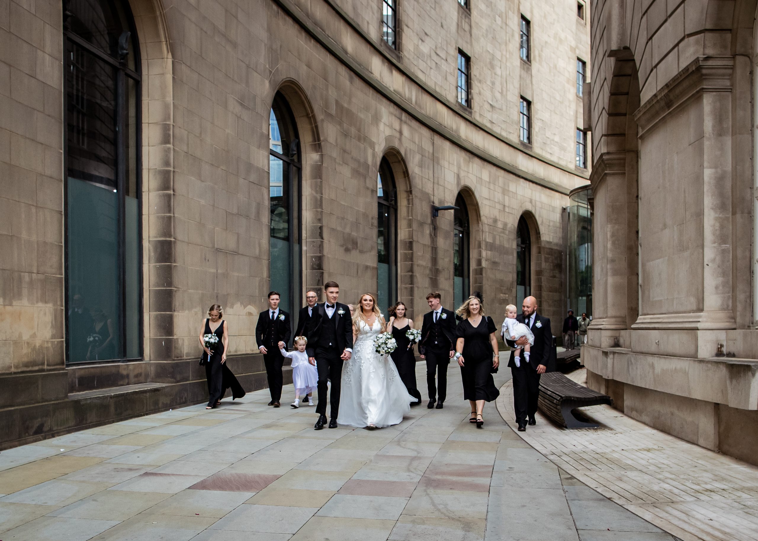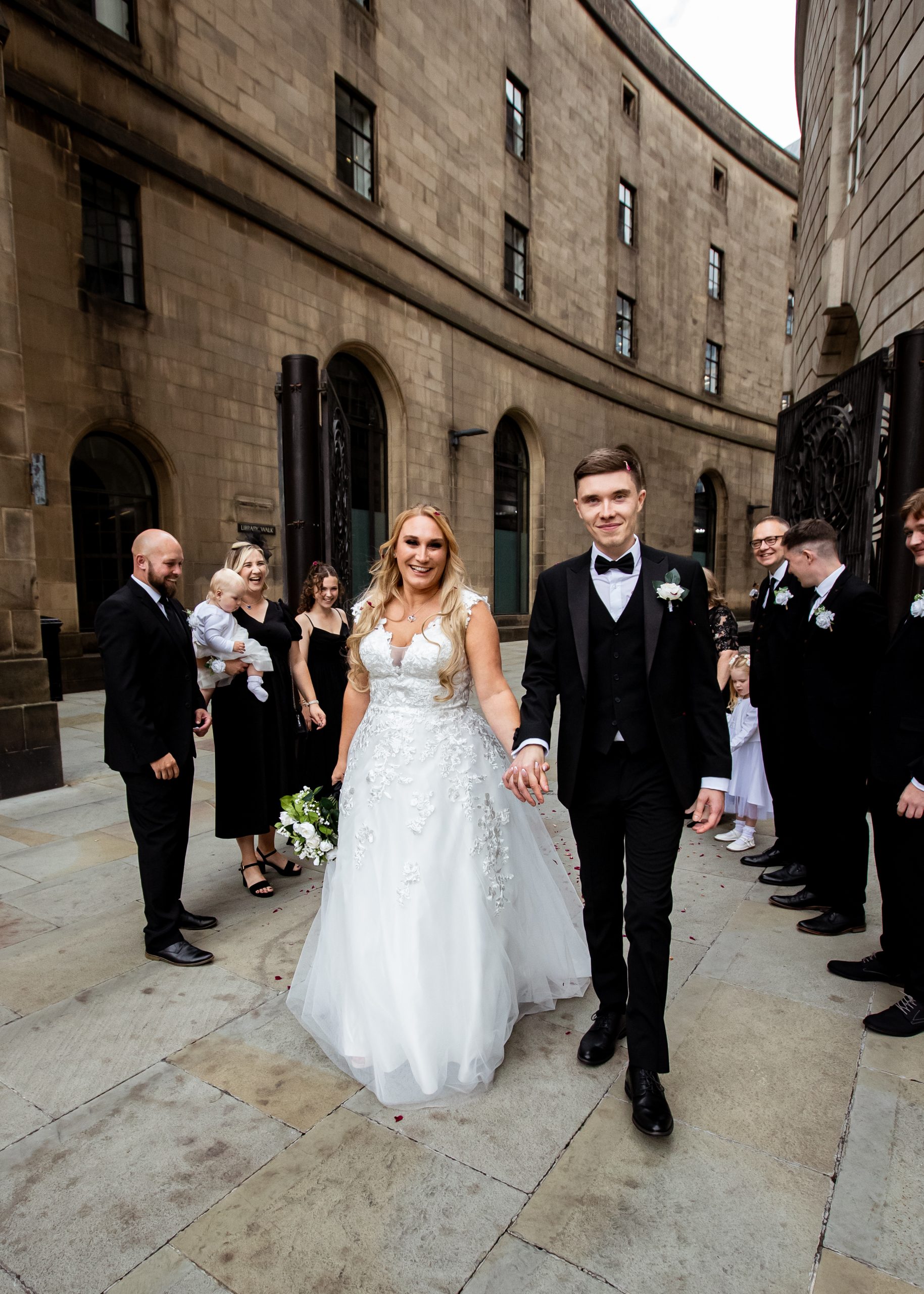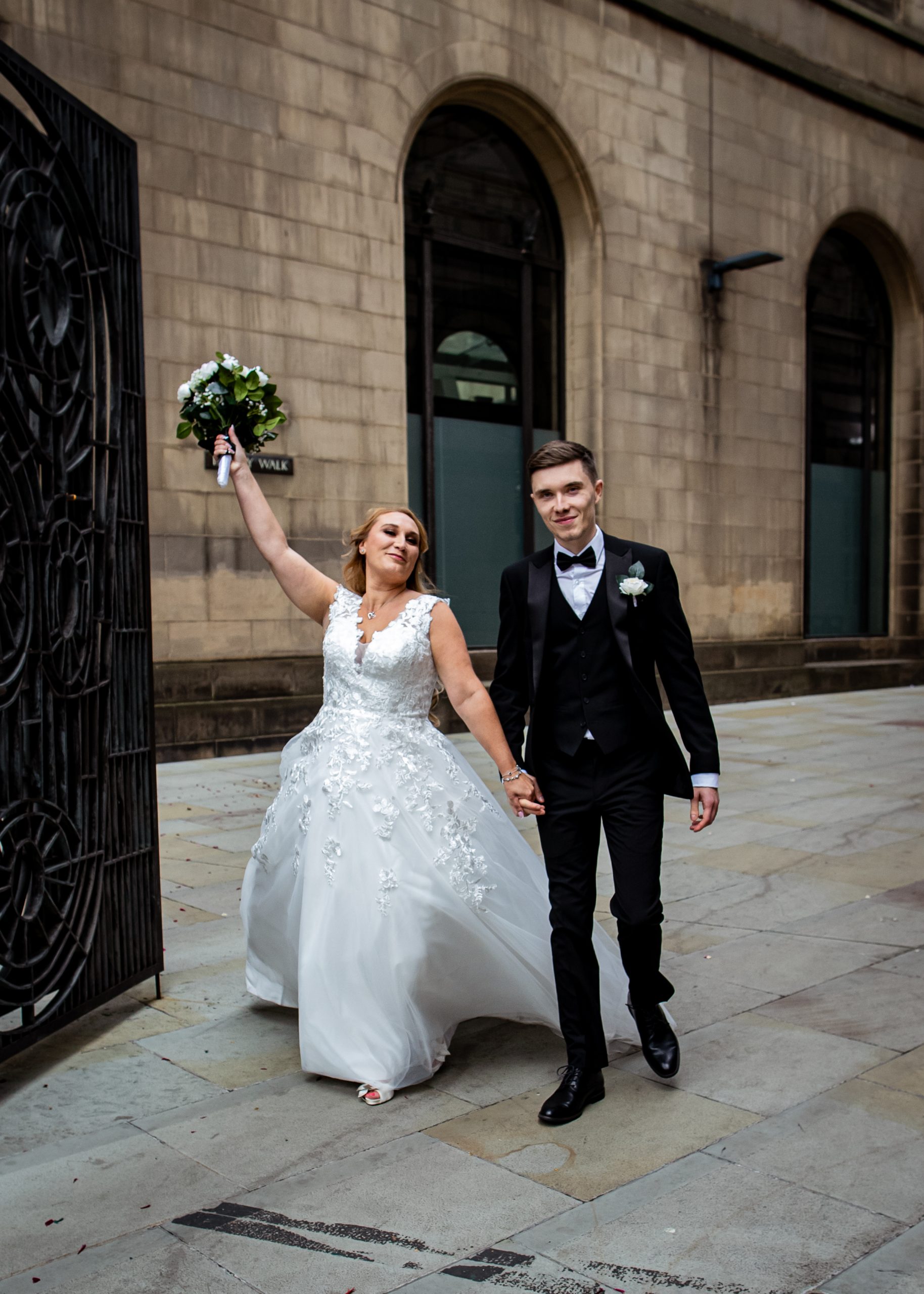 After the obligatory signing of the register, we headed outside for the confetti shot, undoubtedly my favourite shot! However, Manchester Register office do not like confetti outside the entrance. So, instead, we take a very short walk to Library Walk which is just around the corner.