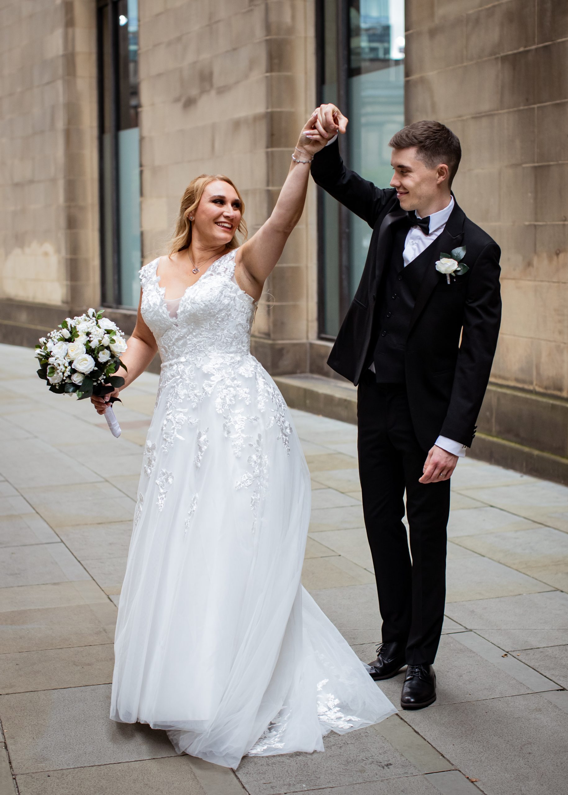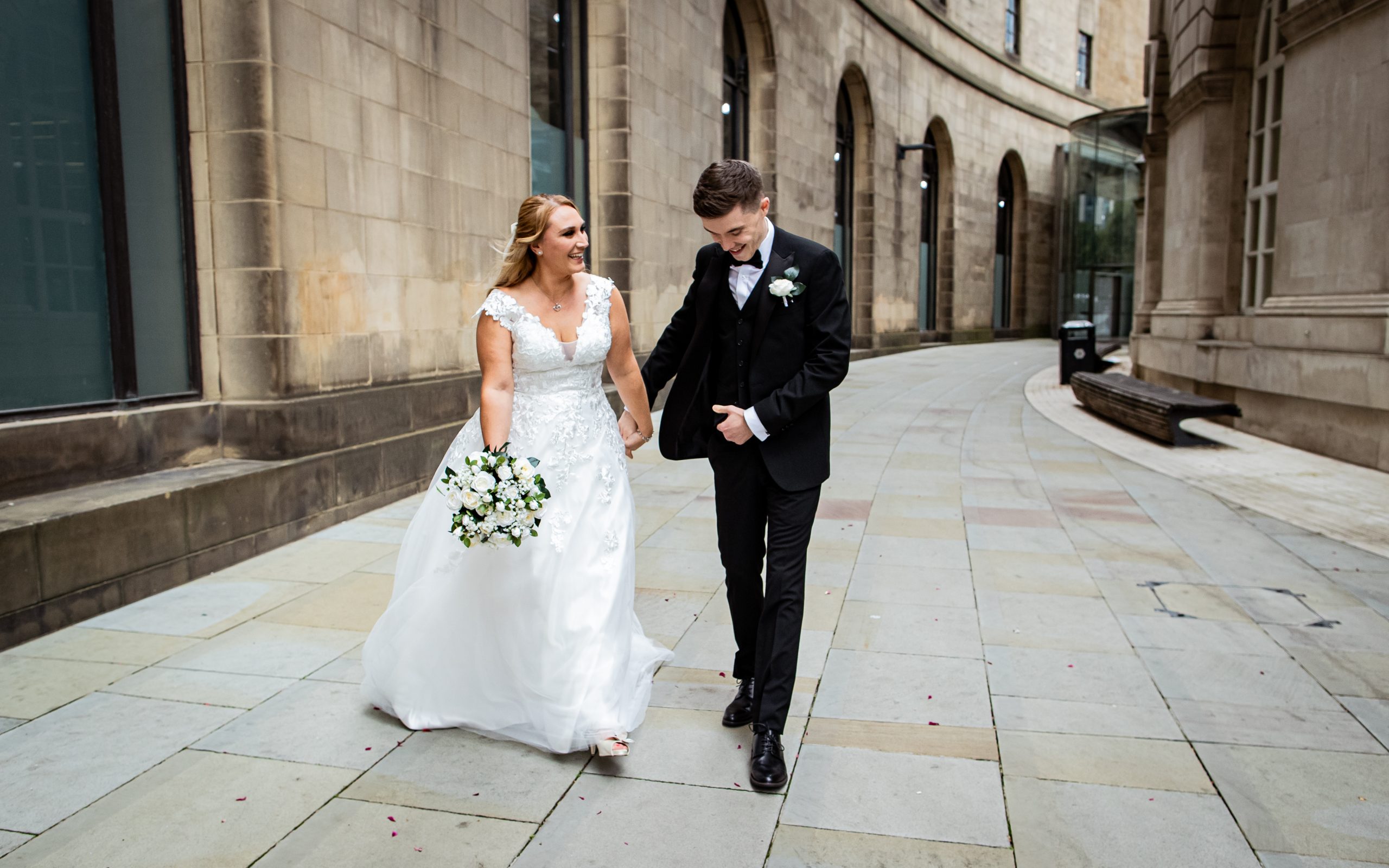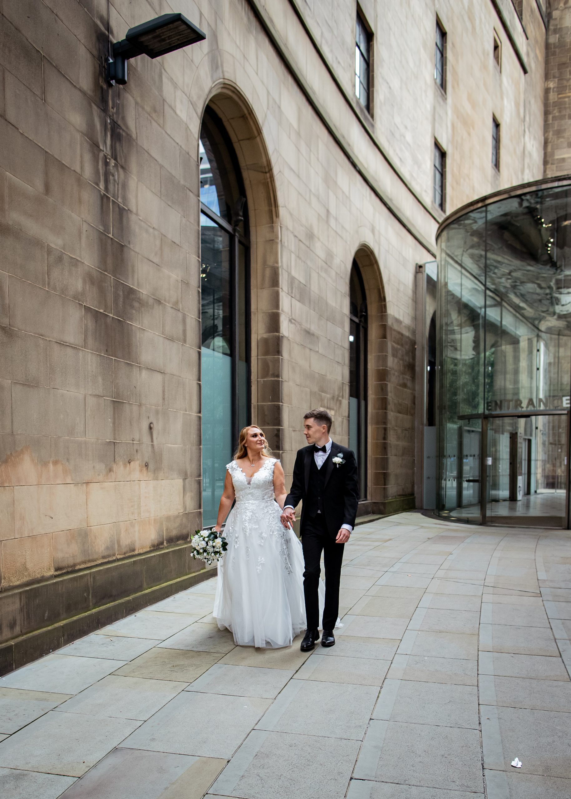 After the obligatory signing of the register, we headed outside for the confetti shot, undoubtedly my favourite shot! However, Manchester Register office do not like confetti outside the entrance. So, instead, we take a very short walk to Library Walk which is just around the corner.