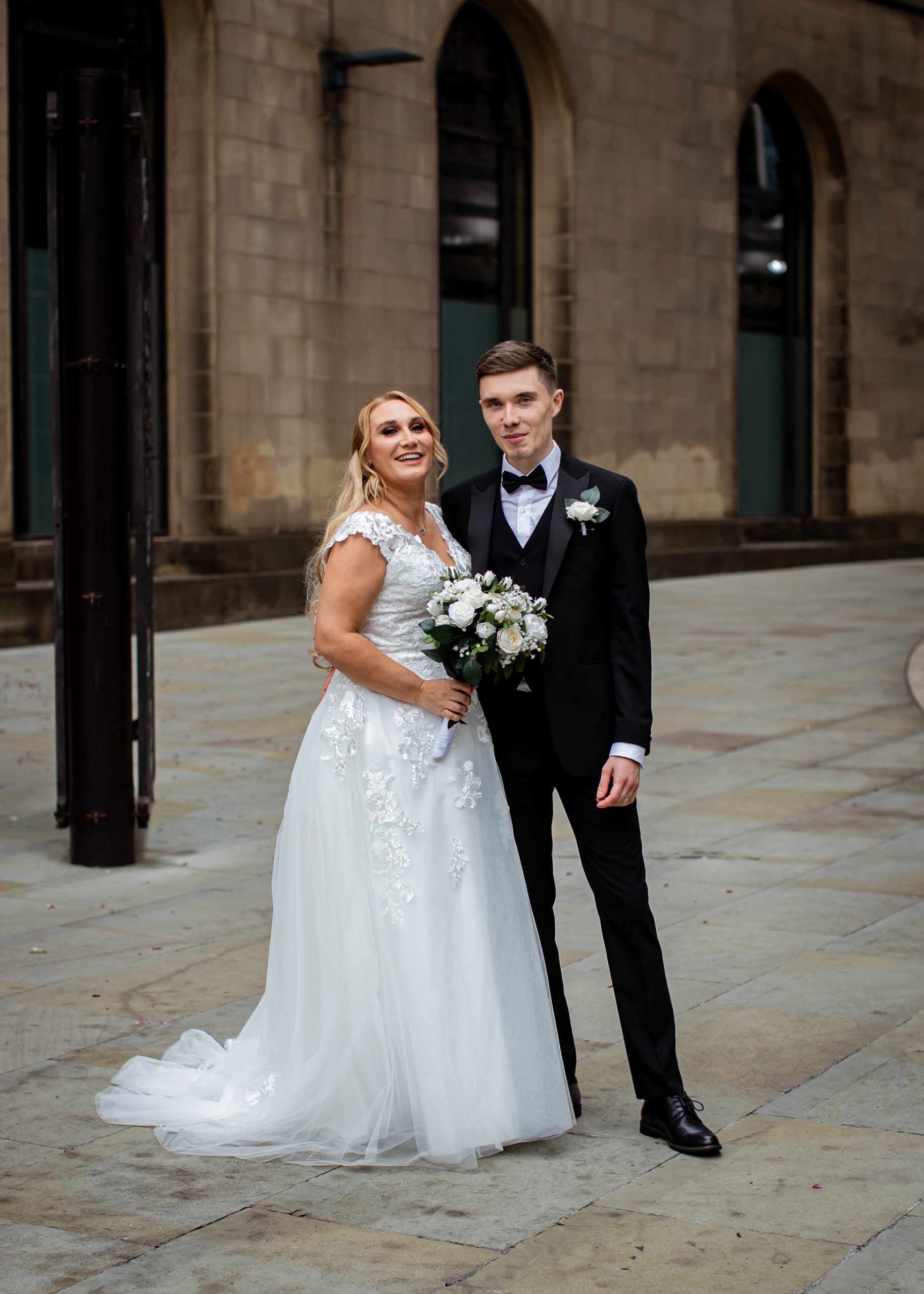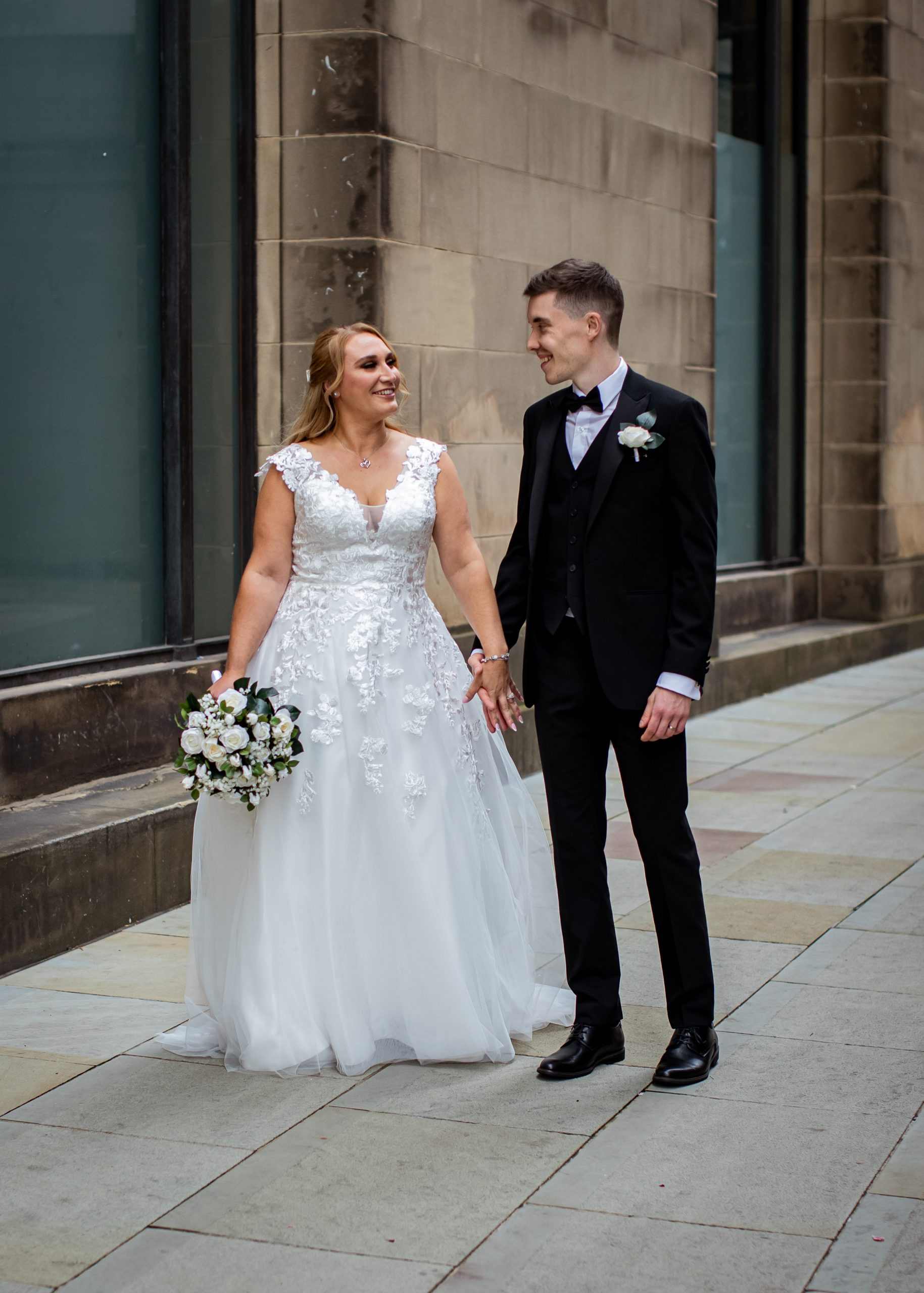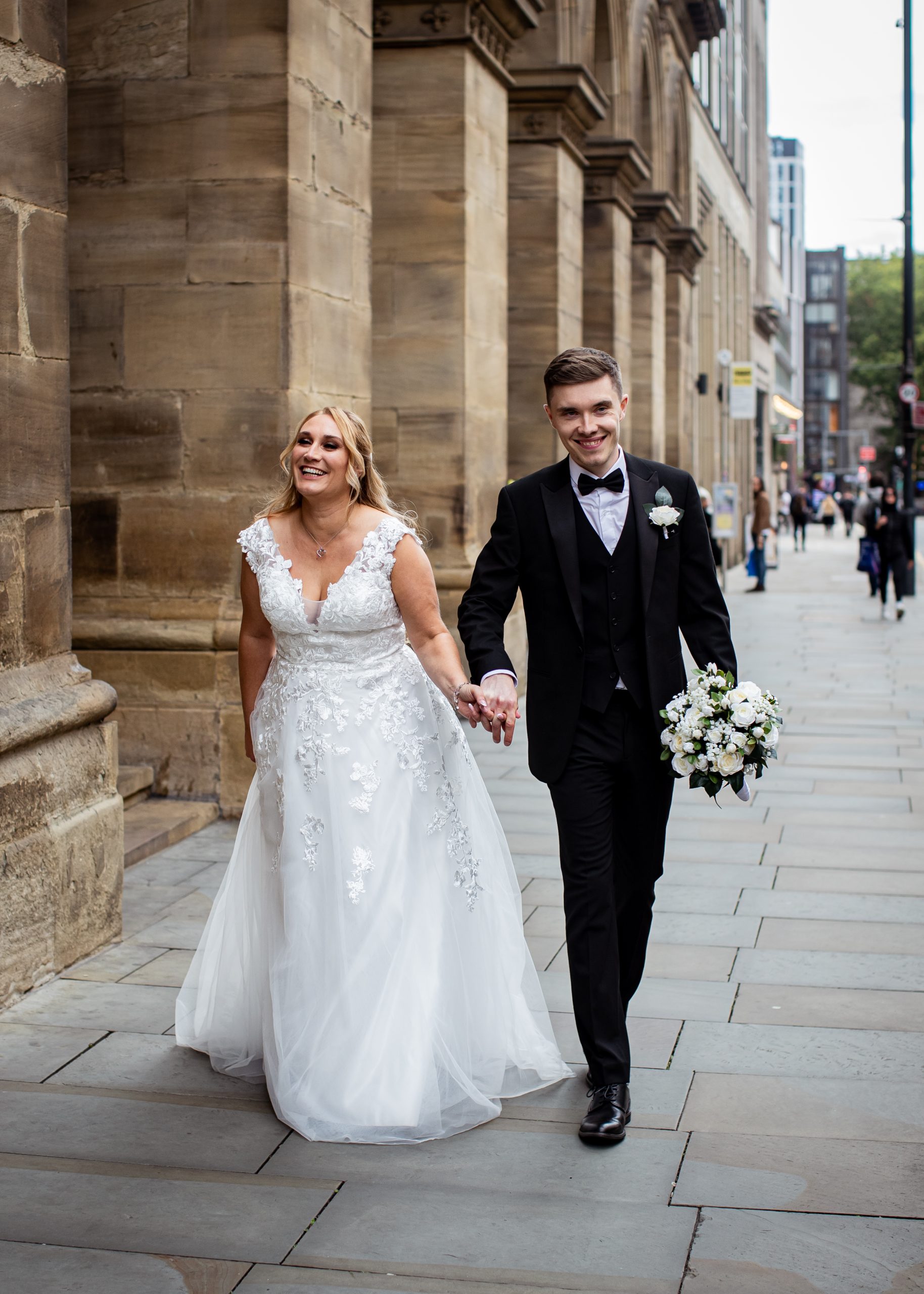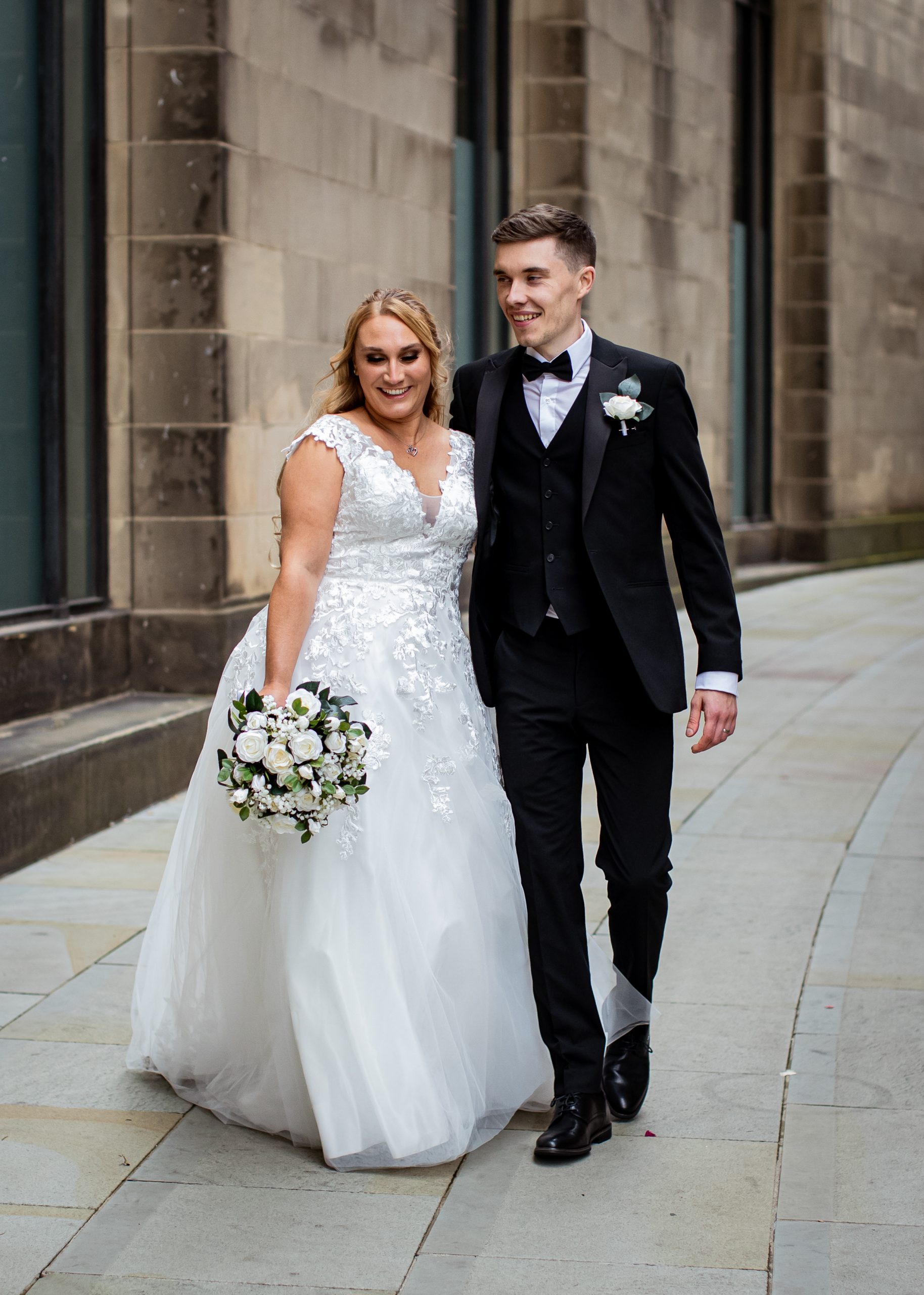 After the obligatory signing of the register, we headed outside for the confetti shot, undoubtedly my favourite shot! However, Manchester Register office do not like confetti outside the entrance. So, instead, we take a very short walk to Library Walk which is just around the corner.